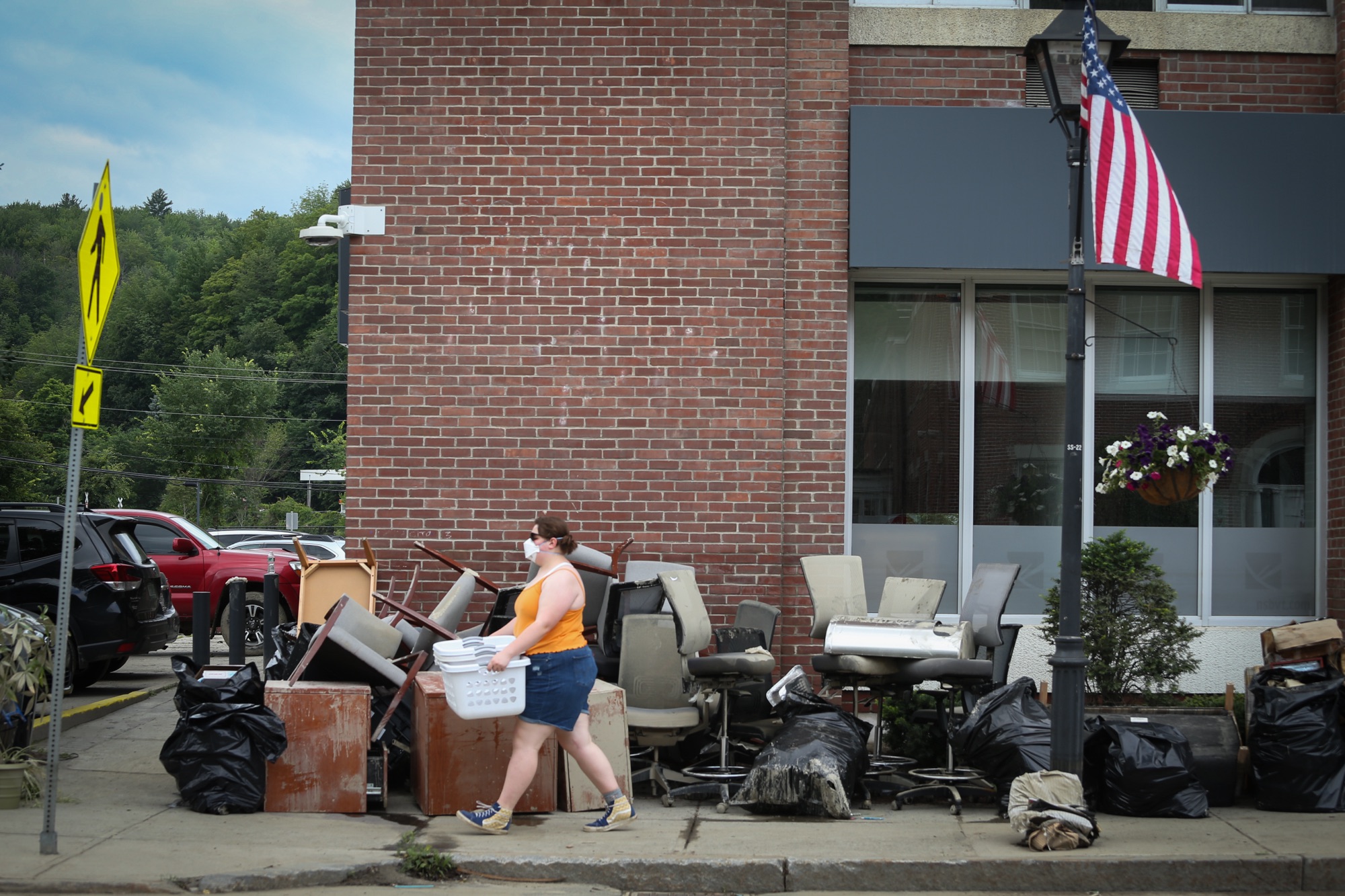 Cleanup efforts on State Street in Montpelier.