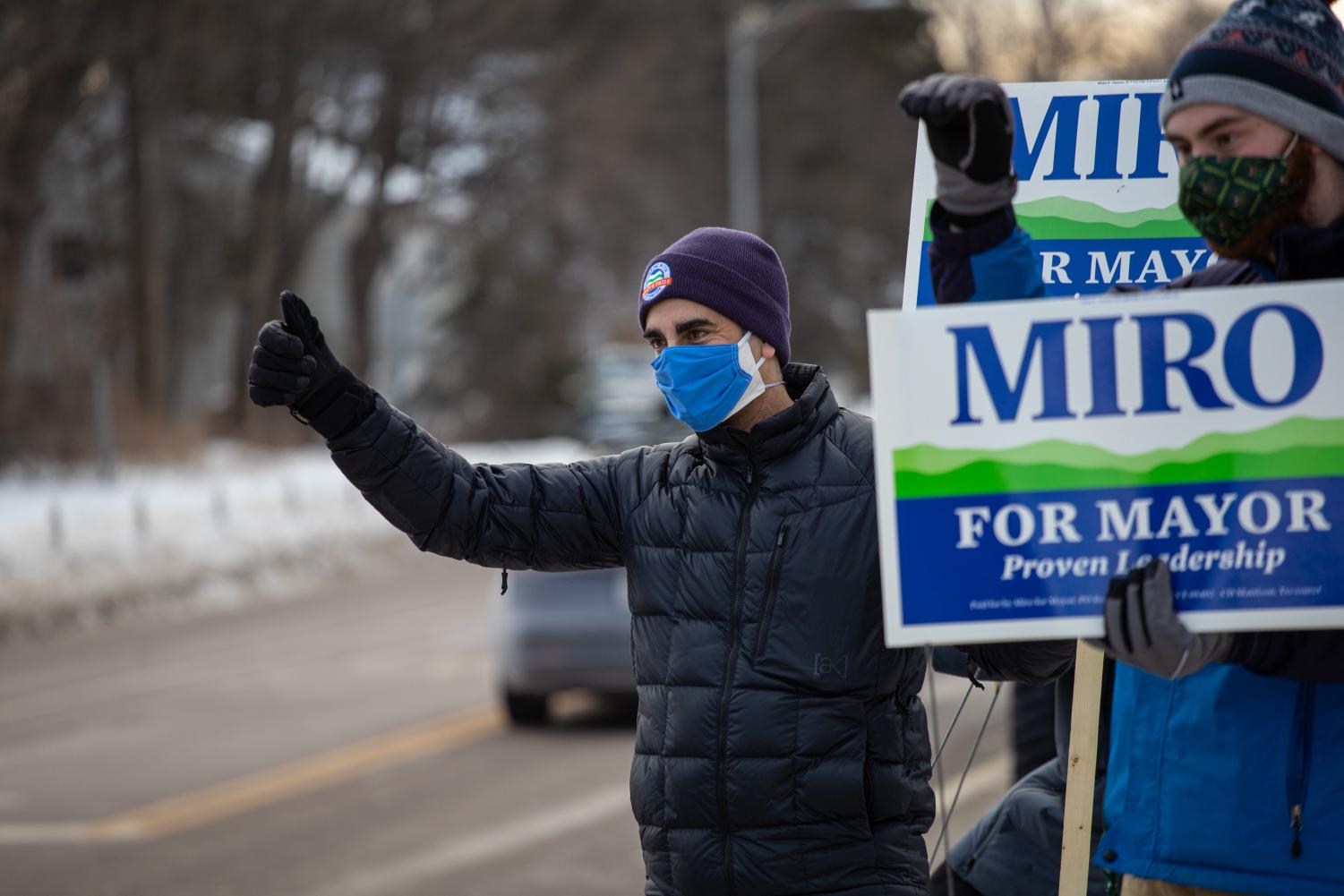 Burlington, Vermont Mayor Miro Weinberger campaigns for reelection Feb. 19, 2021.
